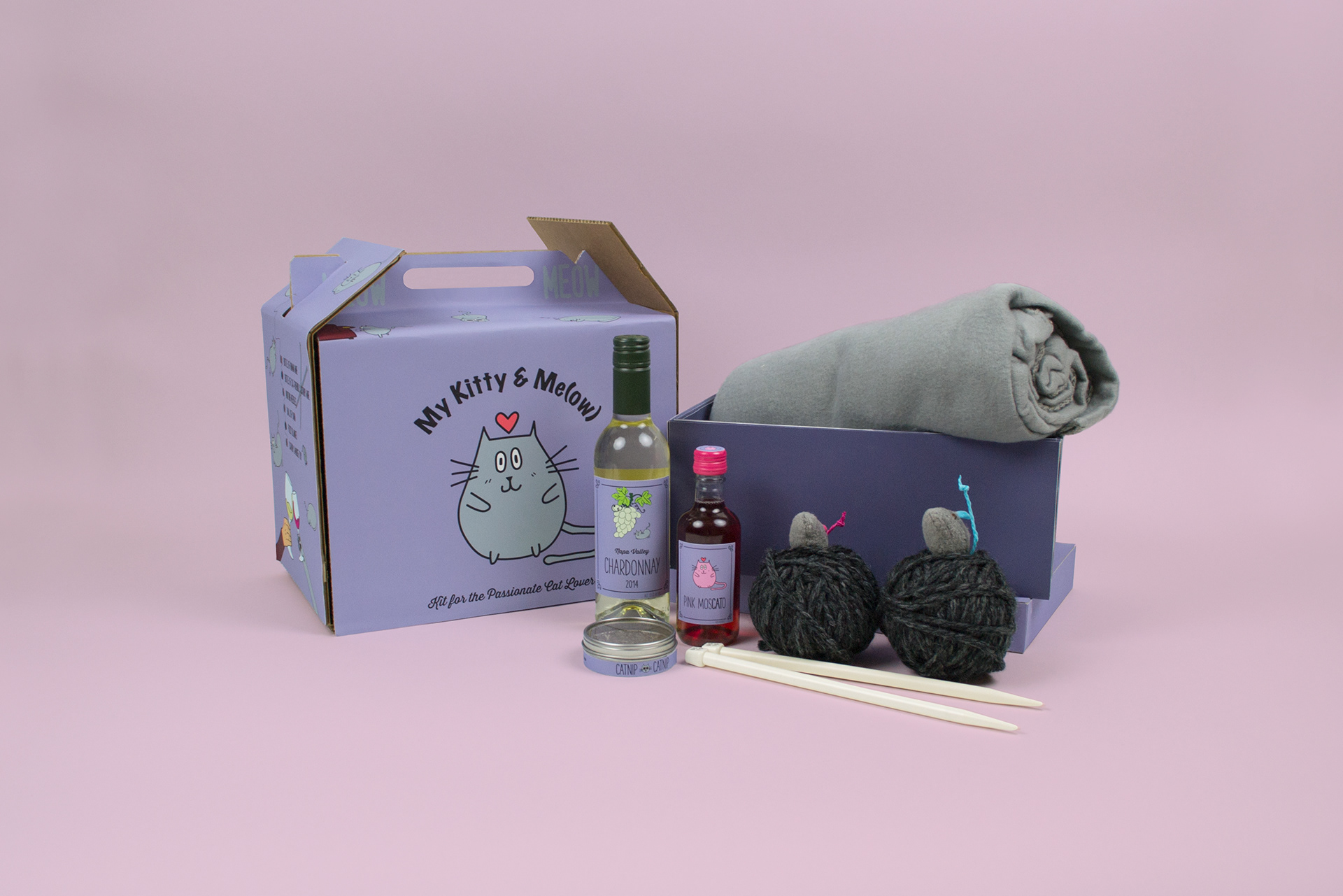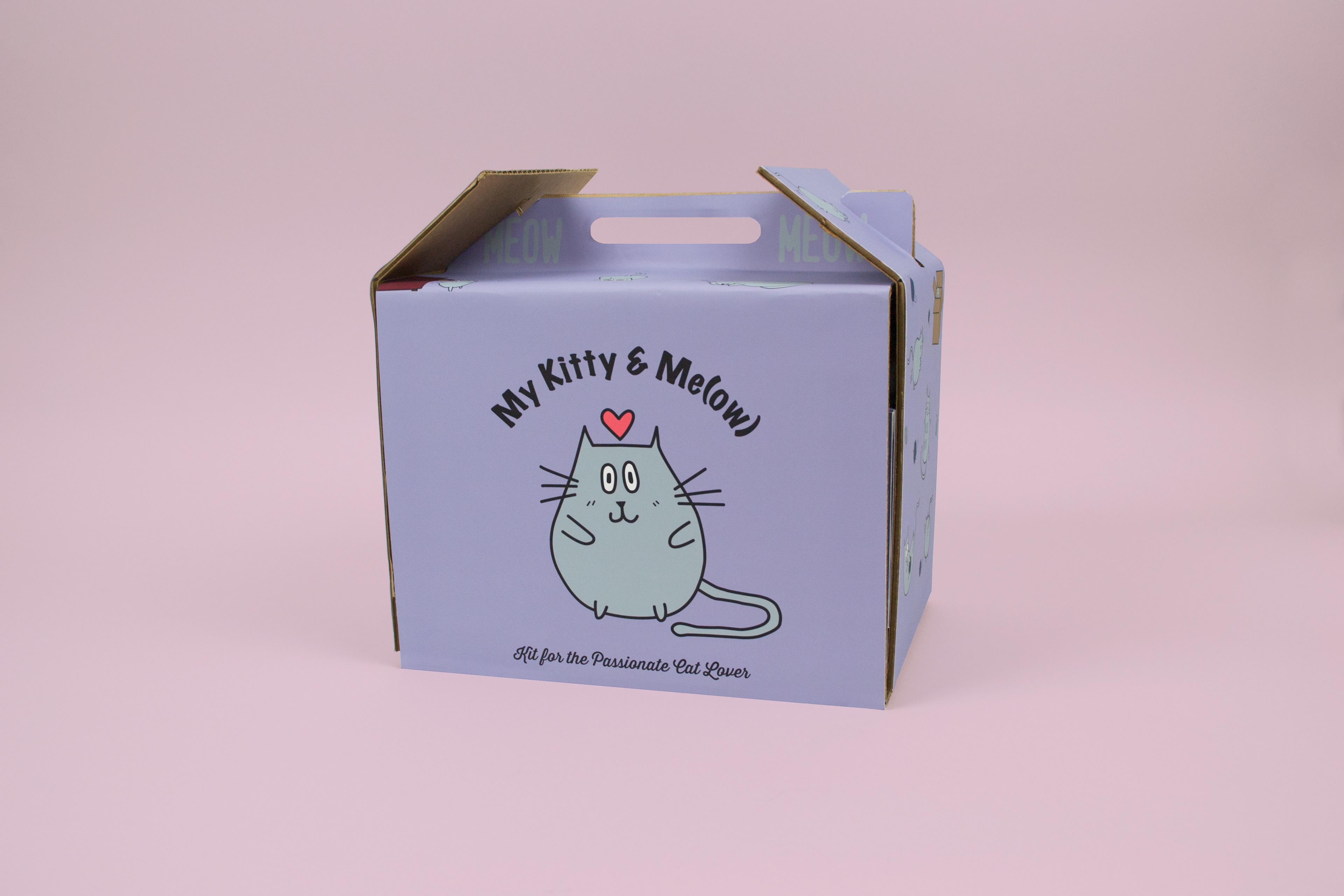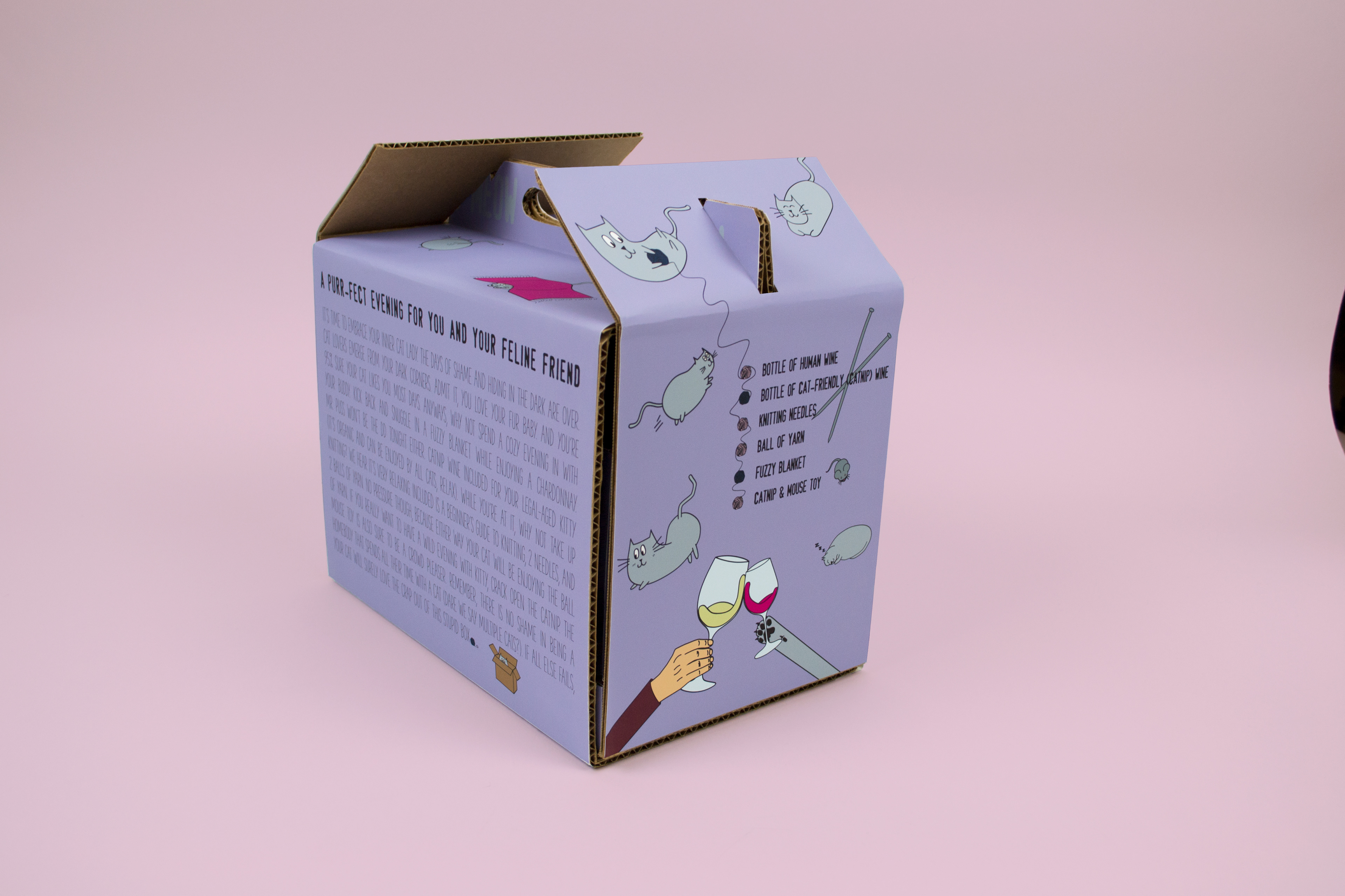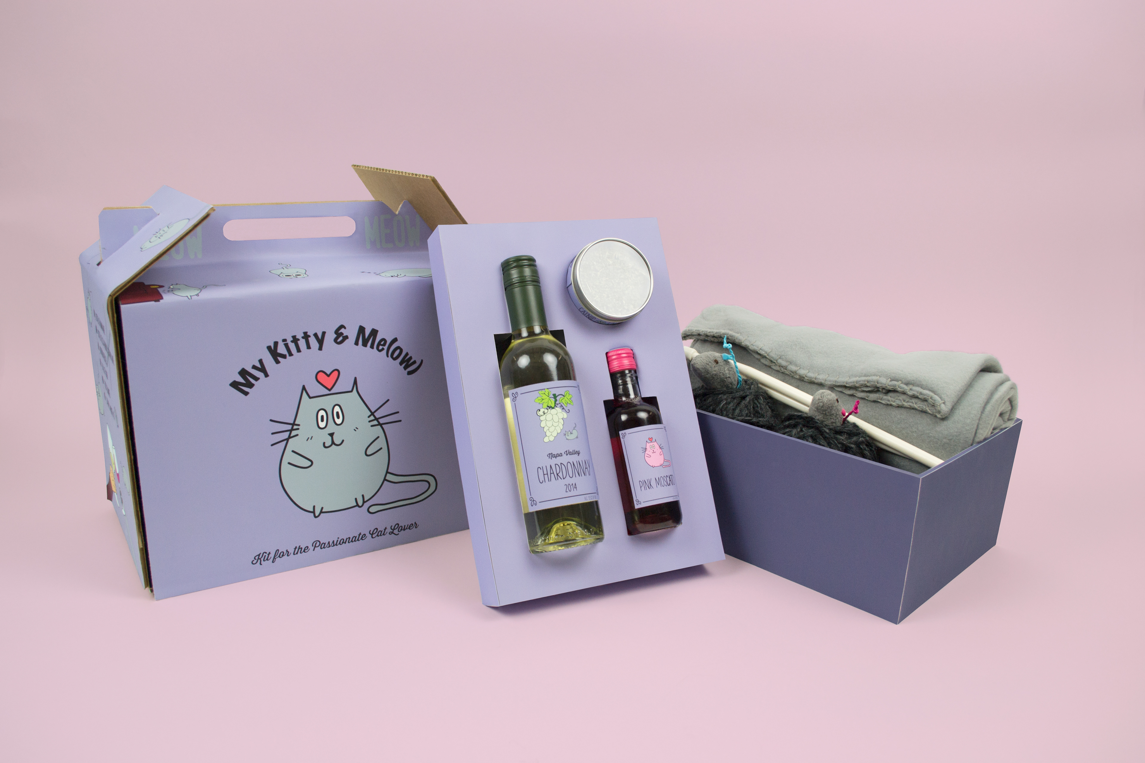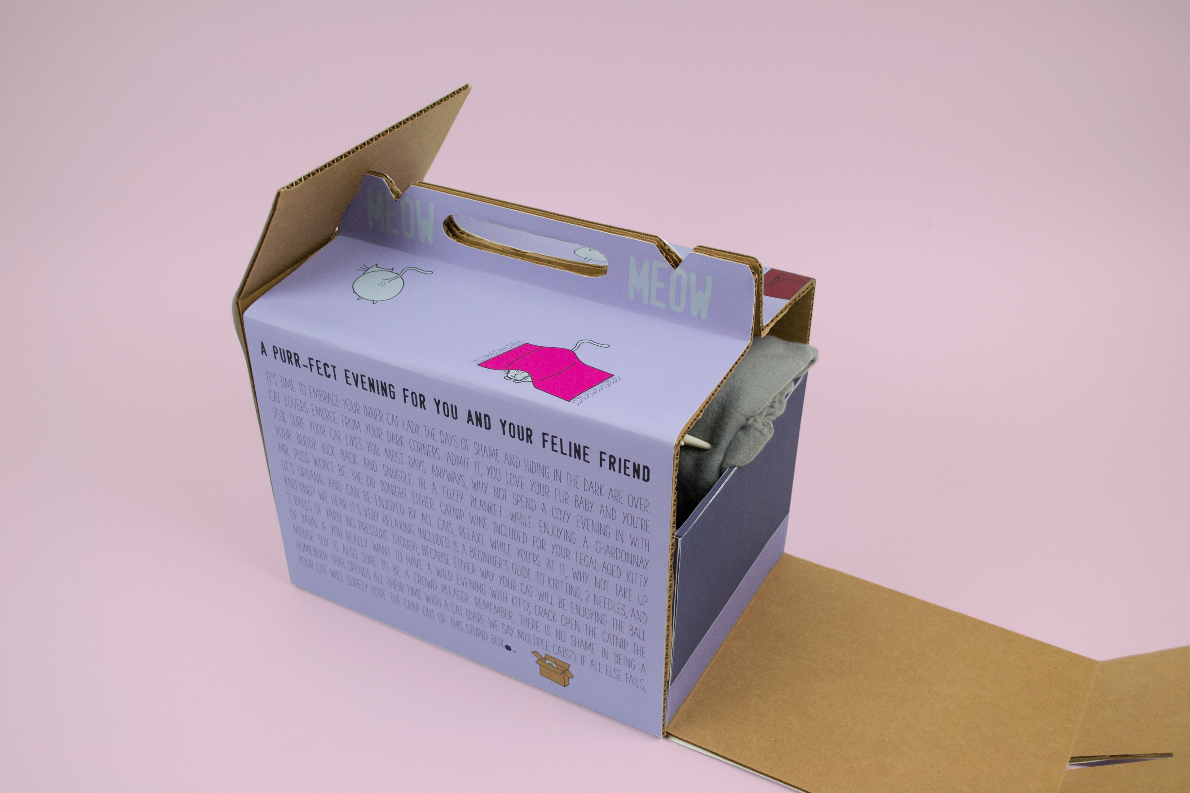 Rigid packaging design project. This is a kit for someone who enjoys spending evenings in with their cat.
